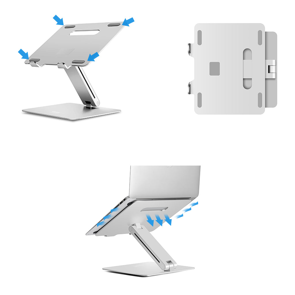 The hole design on the top and aluminum panel can provide more airflow, and is easy to absorb and dissipate heat to prevent the laptop from overheating.
