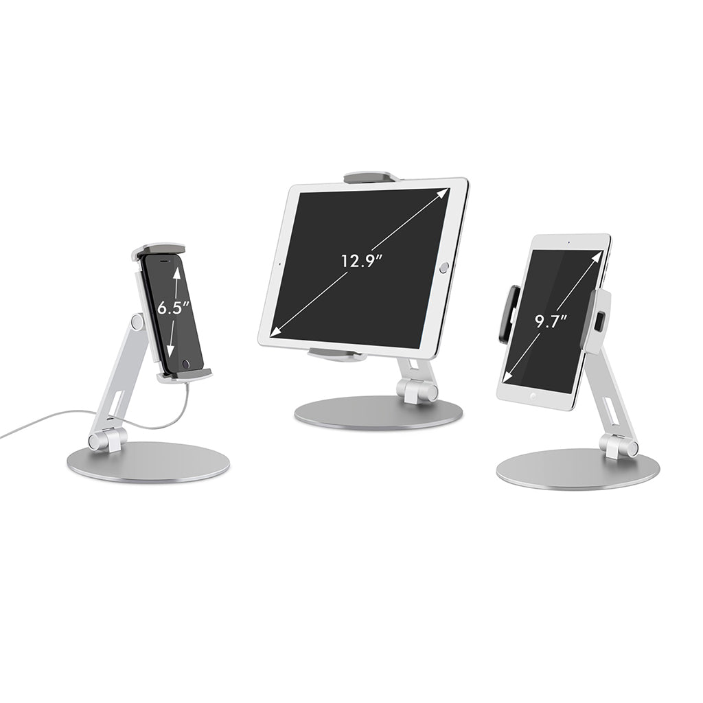 Fits smartphones and tablets from 3.5"-13". Can hold up to 2.2 lbs. maximum load capacit.