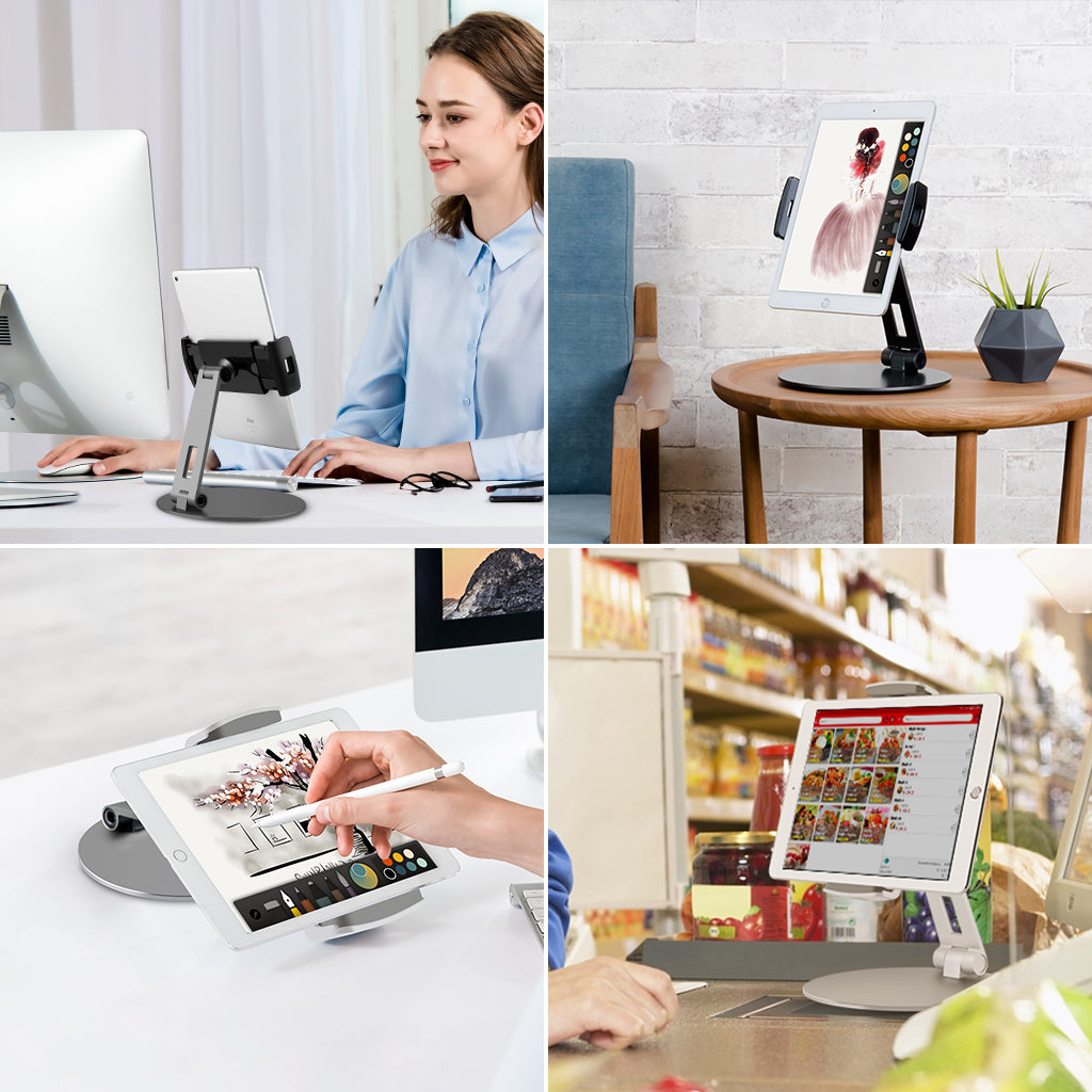 Such as when you at home for your personal time , when you are work in the register desk/ retail store, when you need a thing to hold your tablet to discuss with your co-workers .