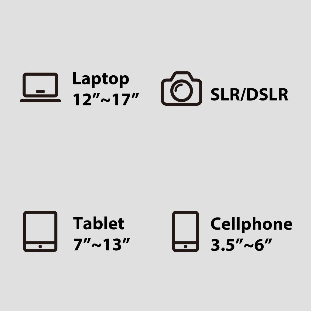 Two holders included for all 3.5-6" smartphone, 7-13"tablets and E-readers.