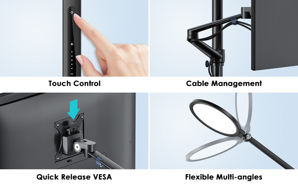 • 【Premium Material & Adjustment Range】 The products are CNC precision processed, and the surface has been metal-oxidized, simple design and fashionable style. The pole is made of Aluminum alloy, which provides a stable lighting experience. The joints of the arms can be bent 270°, and at the same time, the light can be rotated 180° and flipped 180°. The adjustable height range of the main rod is: 14.5"/40cm. The arm length is 18.7"/48cm and can be installed reversed.