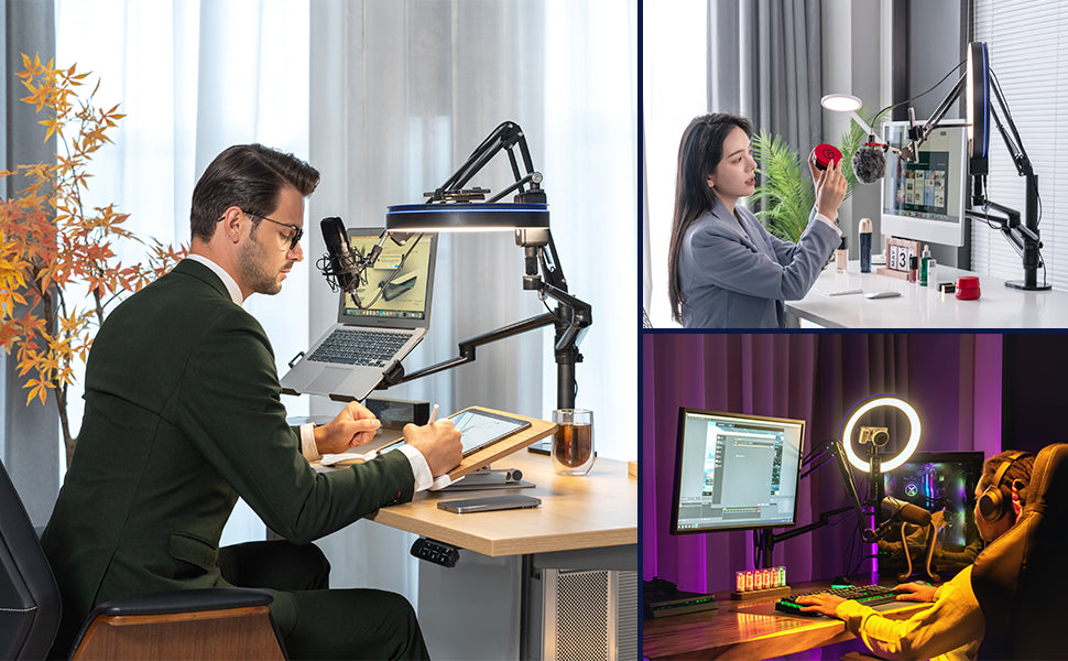 •The C clamp design is suitable for desktop with thickness 0.6 ~ 2.36" or desktop with 2.76" diameter hole.