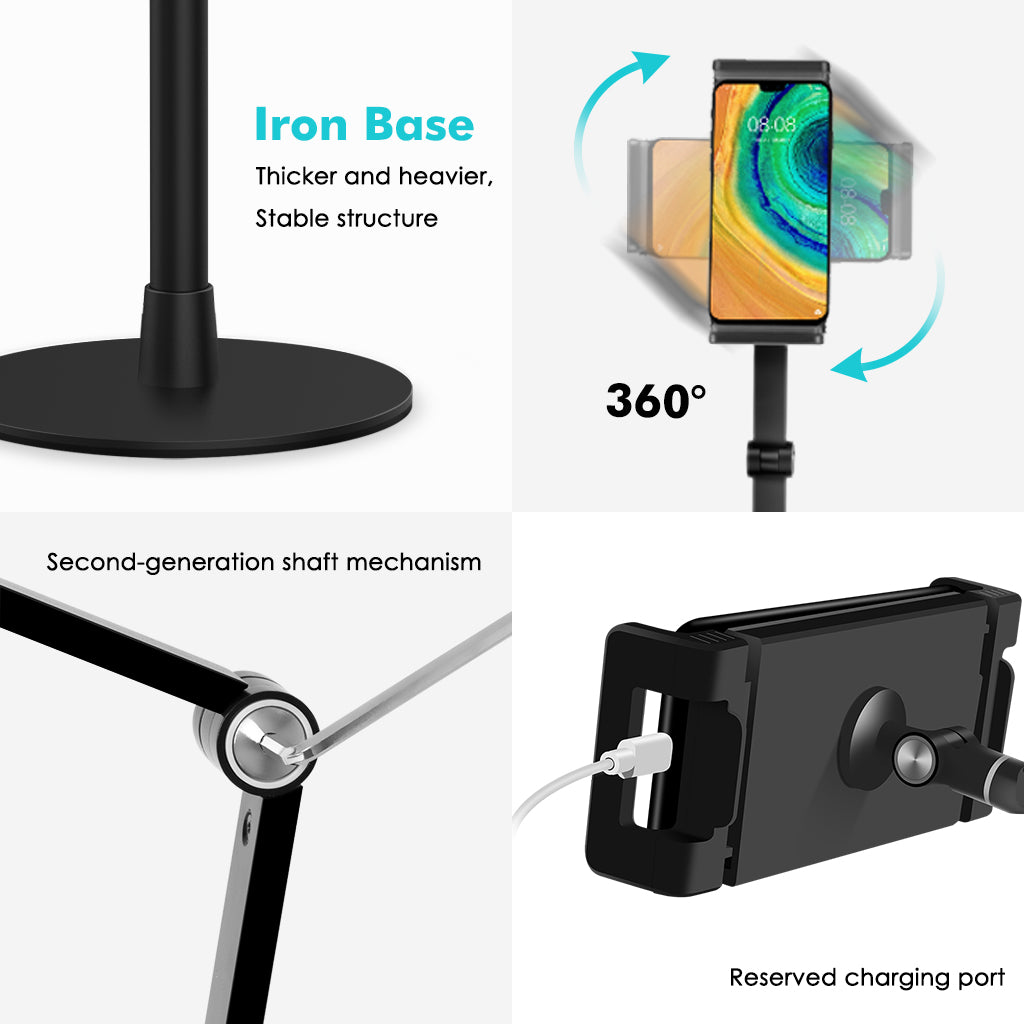 Multiple Angle & Height Adjustable: This phone holder for desk is in accordance with ergonomic design. The height adjustable range: 9.8". Holder is rotatable which will provide the viewing position you want.