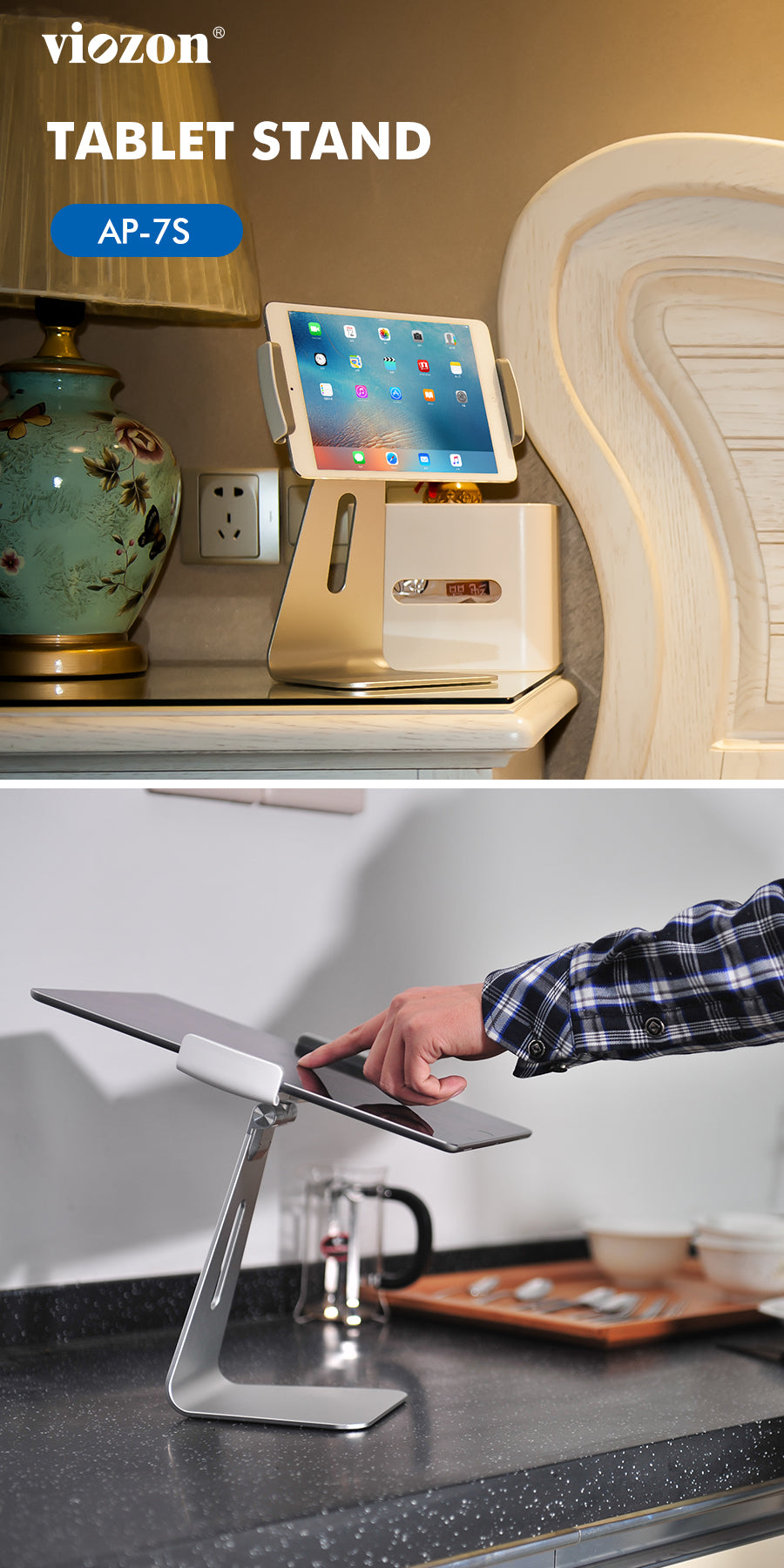 Two holders included for all 7-13 inches tablets, smartphones and E-readers.